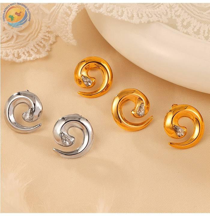 日韩小众个性螺旋扭转设计感饰品简约小众镶钻轻奢风钛钢首饰套装