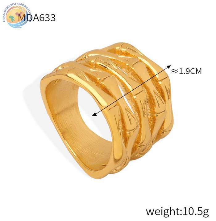 欧美风新款跨境时尚个性简约设计钛钢镀金多层次竹节戒指饰品批发