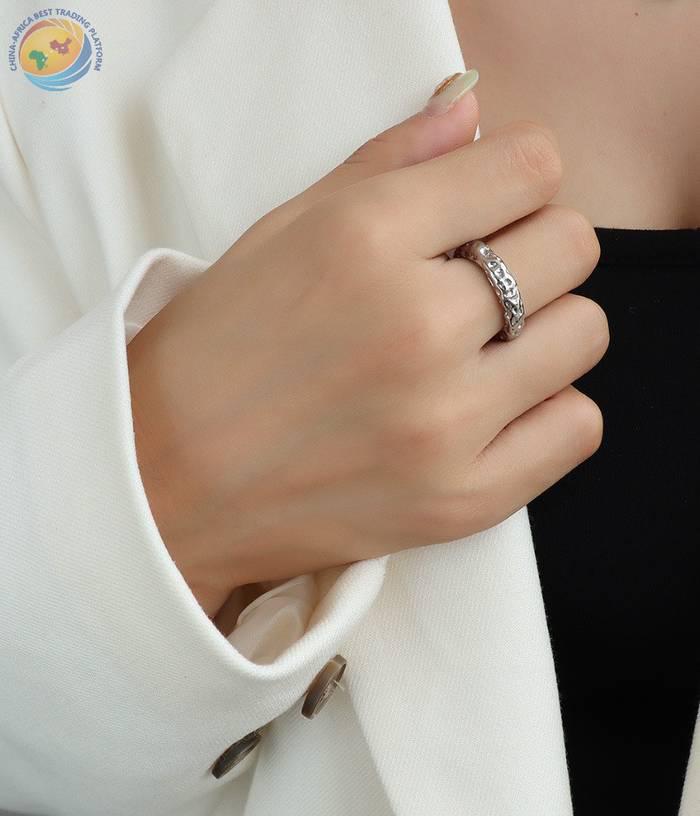 marka法式风格捶打ring锡纸纹理戒指女钛钢18k金ins饰品食指戒