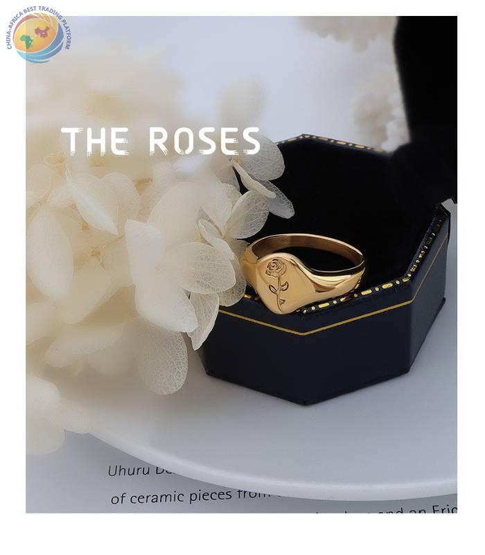 marka French Ring Rose Flower Ring Index Finger Ring Ring Titanium steel 18k gold tail ring ins Style