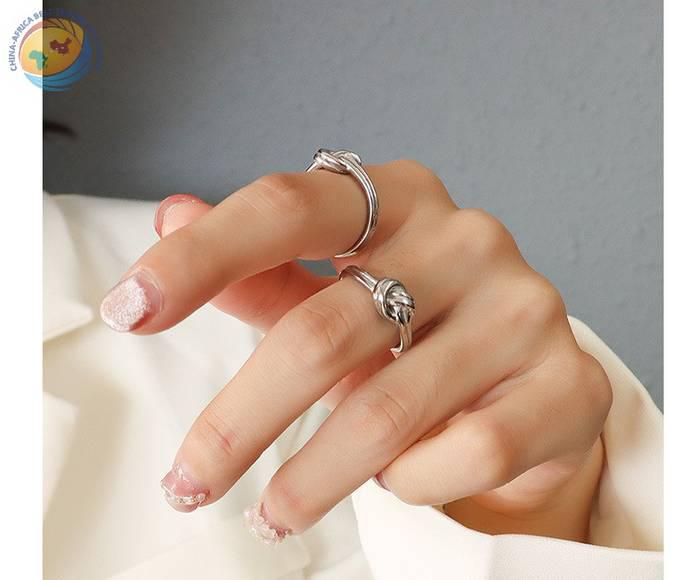 跨境意大利网红同款个性打结铸造戒指 百搭时尚钛钢18k金指环A171