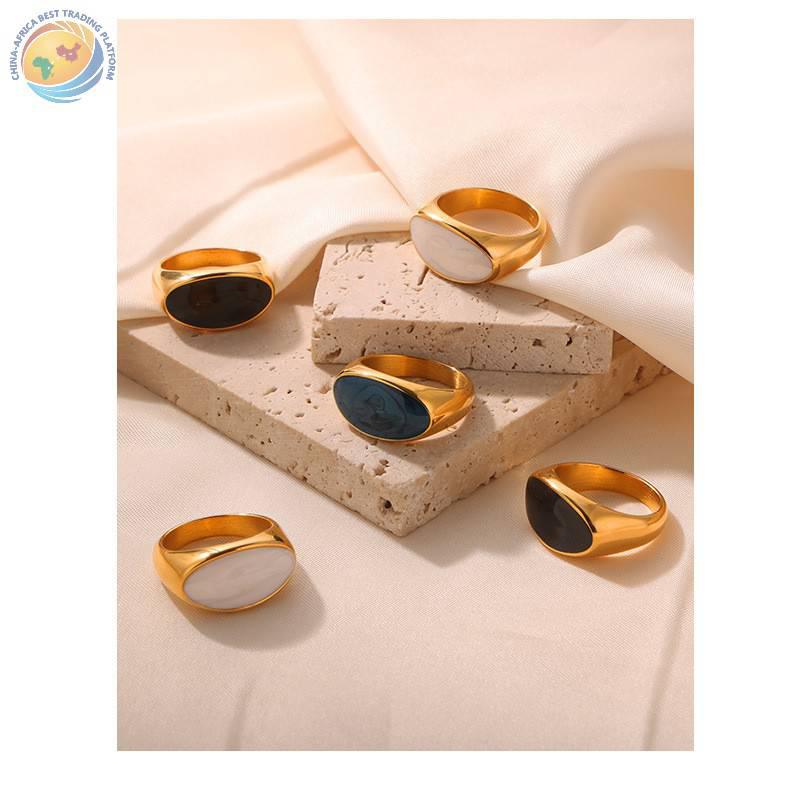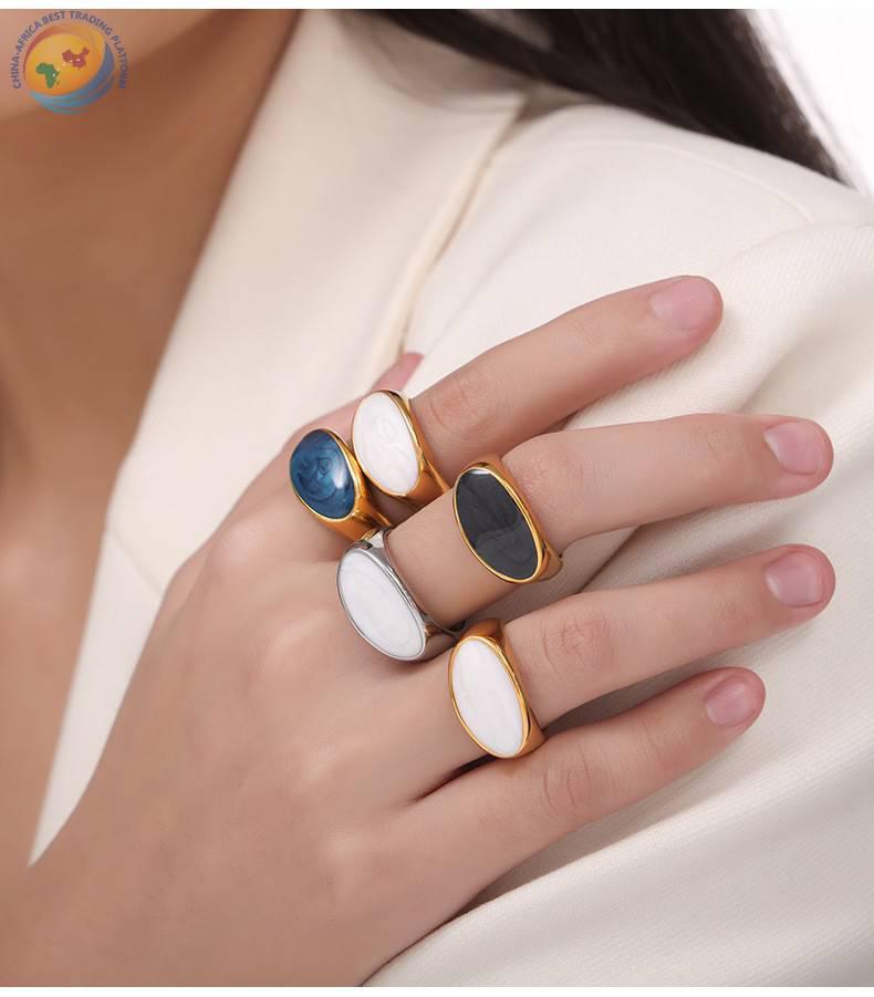 新款欧美风复古钛钢镀金几何珐琅彩釉戒指指环