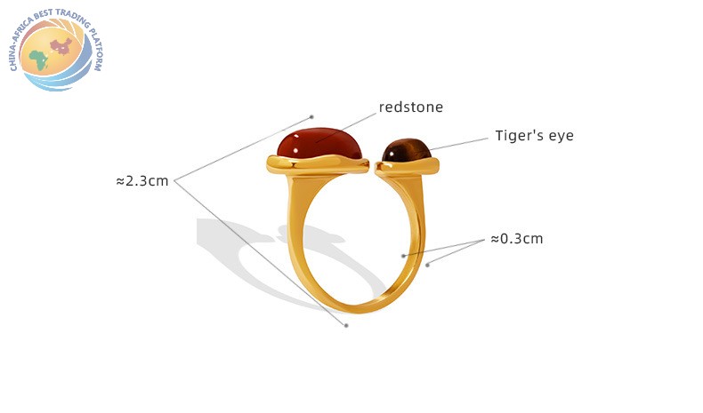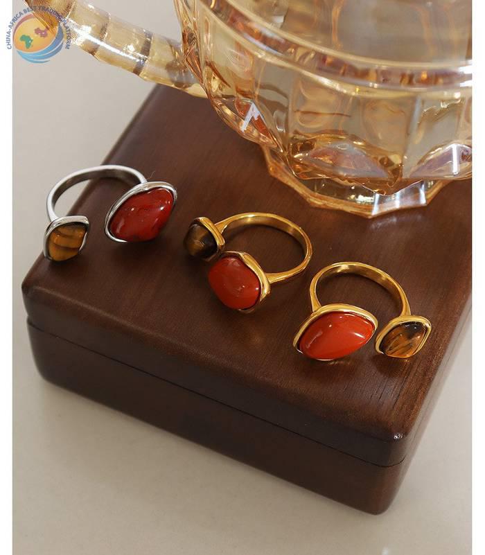 热销复古中性风天然红石虎眼石戒指钛钢镀真金指环