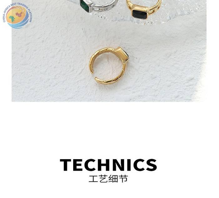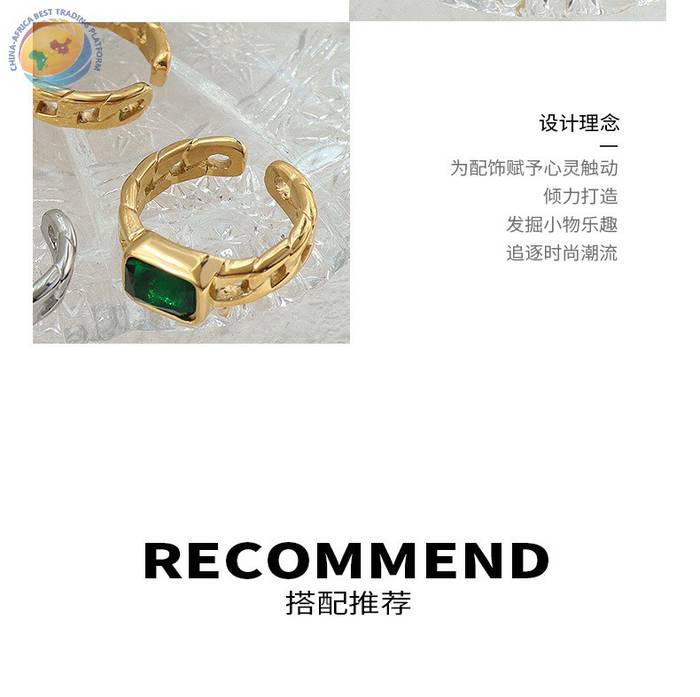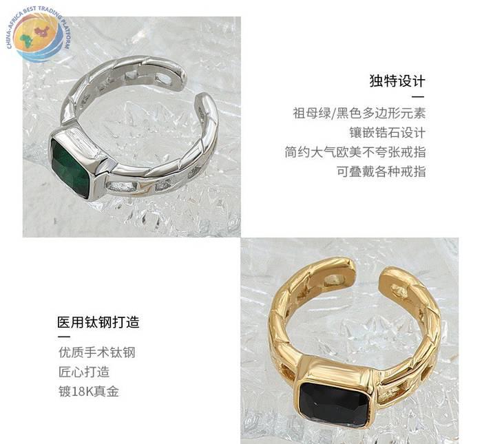 French niche design chain black square diamond cut ring female opening ring