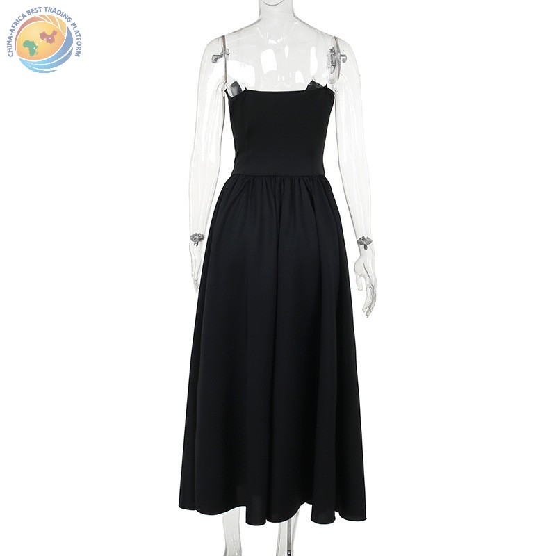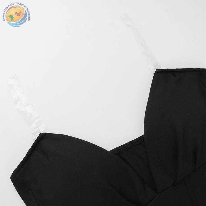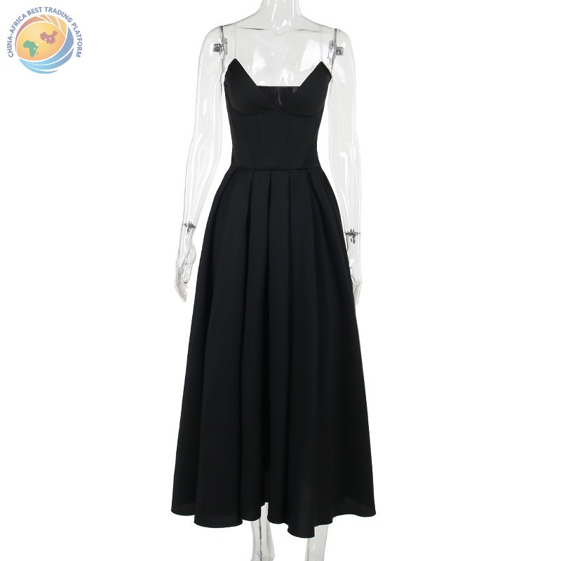 优雅气质纯色深v漏胸紧身收腰鱼骨性感连衣裙ins