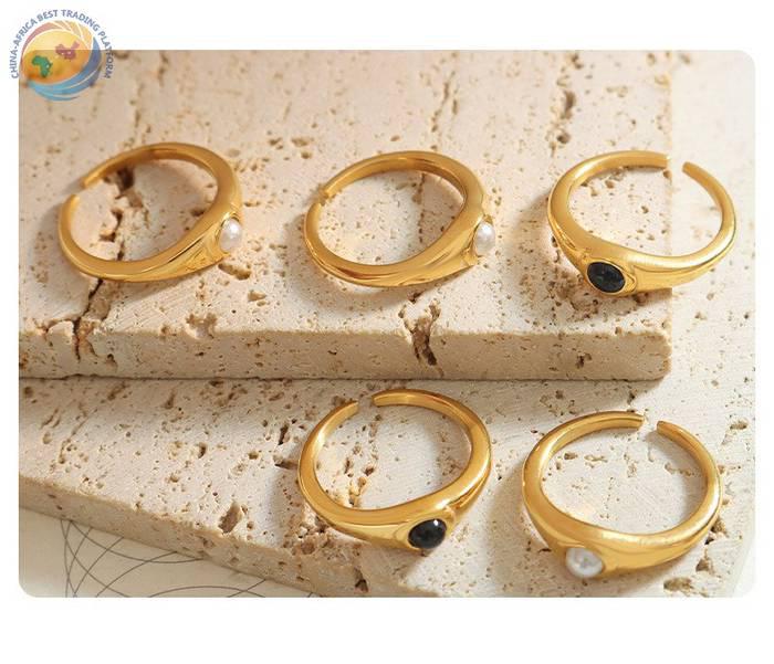 个性气质镶嵌黑白珠子电镀18K金戒指女