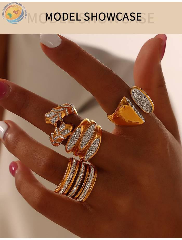 满天星镶钻设计感戒指钛钢镀金多层食指戒