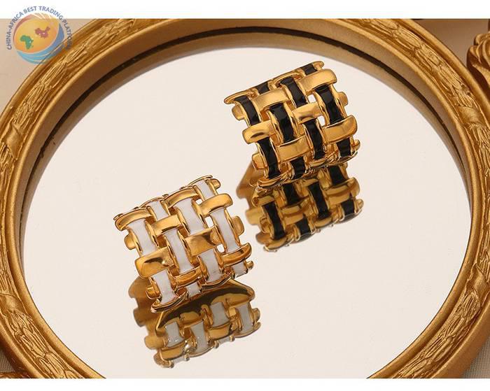 Niche design titanium steel gold plated enamel braided irregular ring