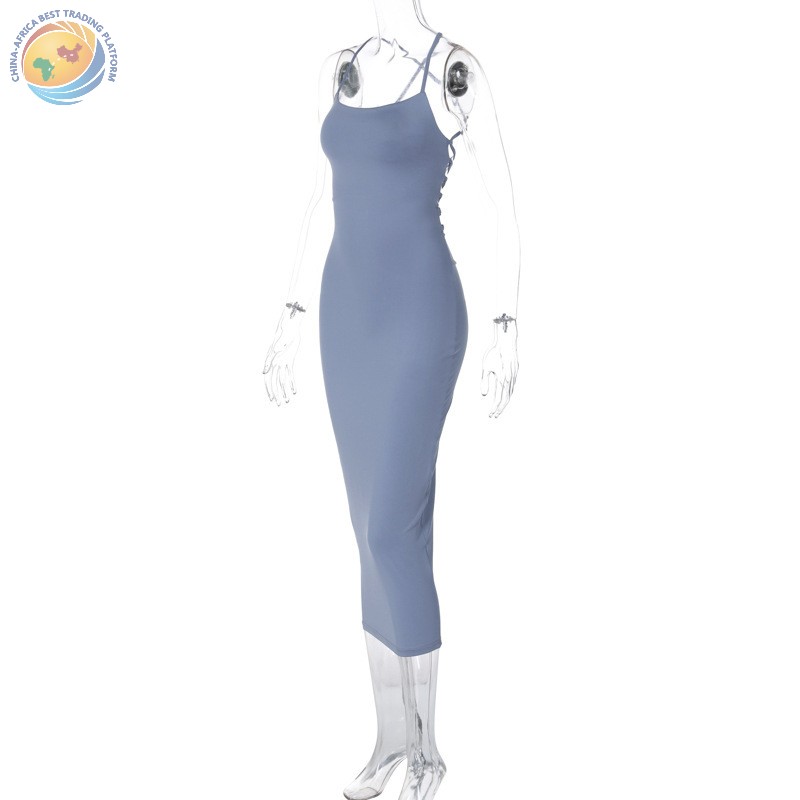 Cool simple solid color halter with bare collarbone tight waist pack buttock step dress woman