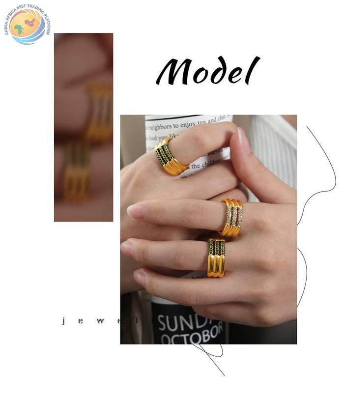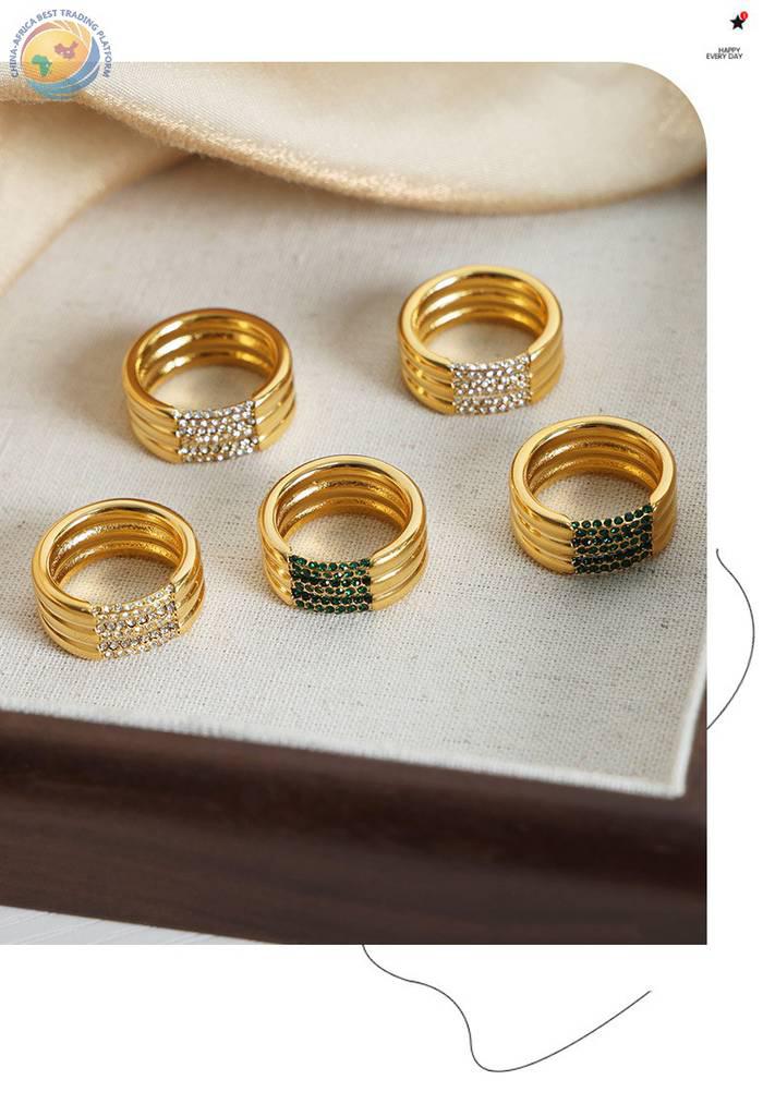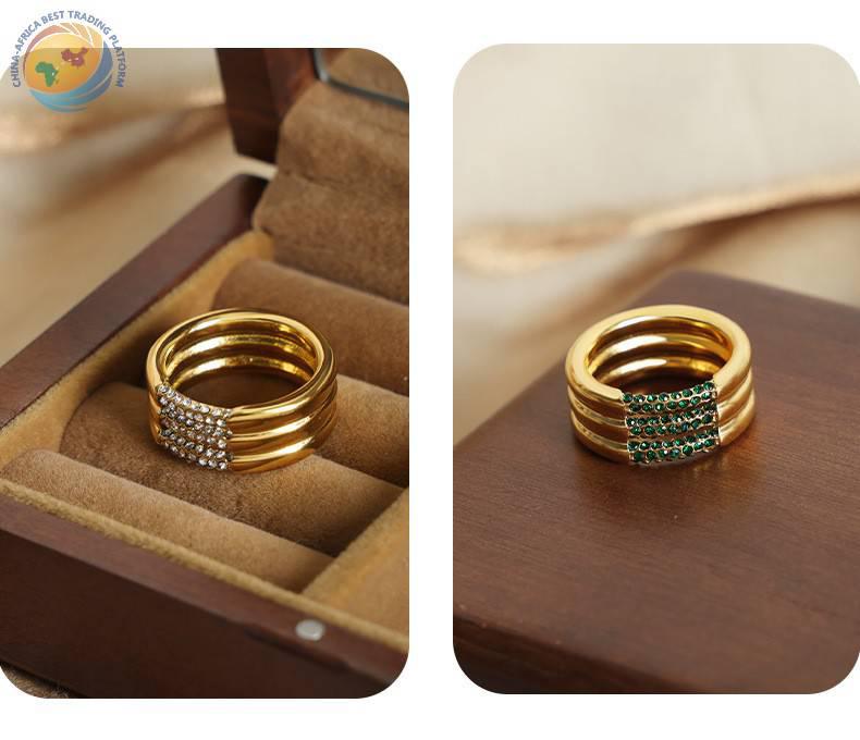 欧美新款小众设计镶捷克钻钛钢镀金多层戒指
