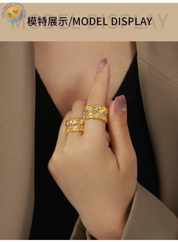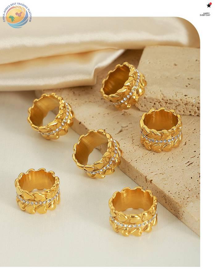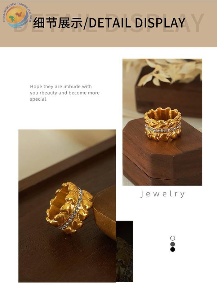 Vintage style niche design titanium steel plated 18-karat gold heart diamond ring