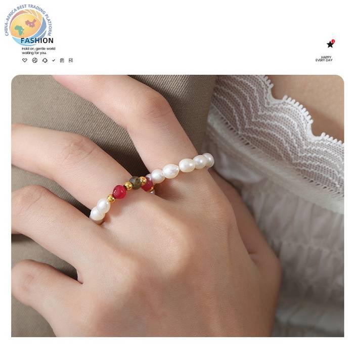 法式轻奢时尚简约个性天然珍珠手工串珠戒指