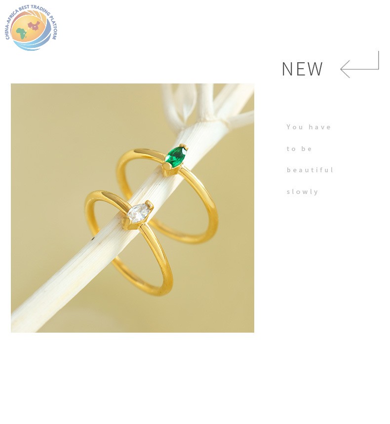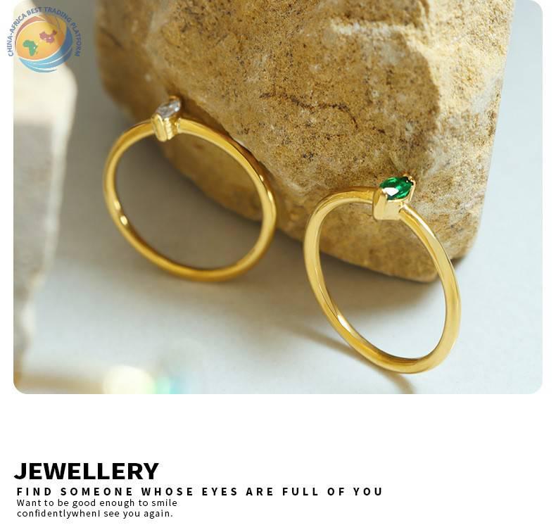 欧美菱形镶嵌锆石设计戒指极简素圈指环热销