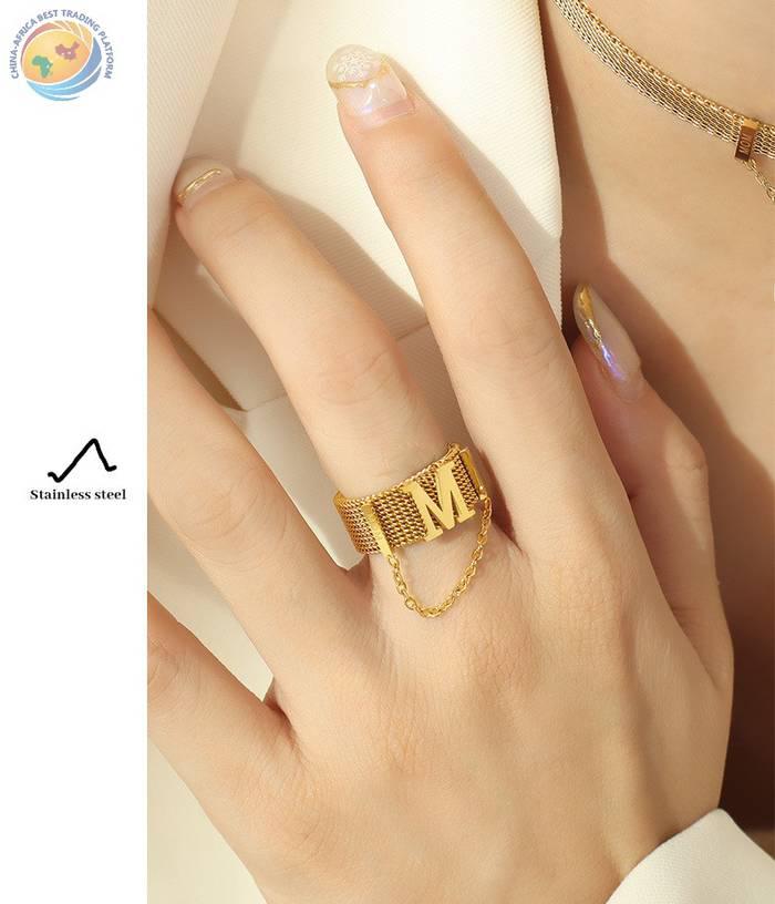 欧美夸张个性网带编织M流苏链条Ins风戒指
