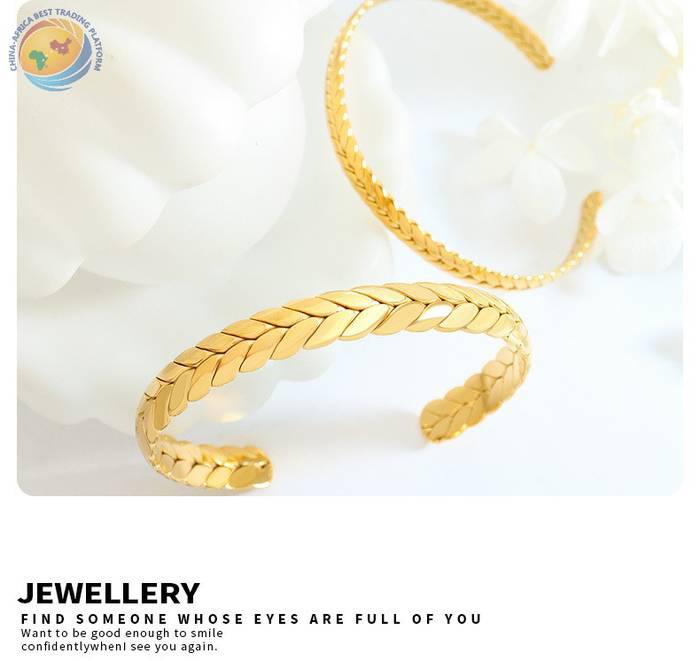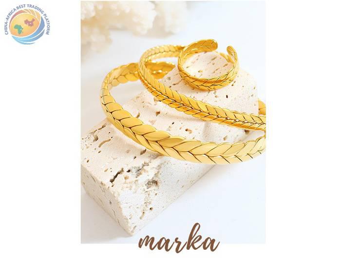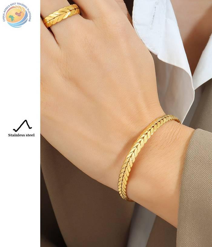 麦穗手镯个性戒指钛钢镀金首饰套装