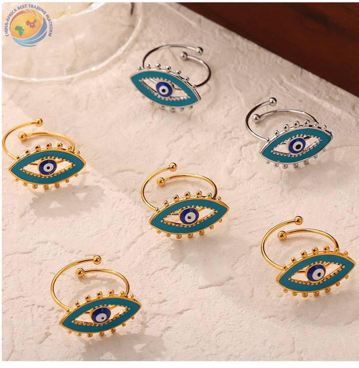 小众戒指砝码彩釉设计感恶魔之眼造型钛钢开口食指戒