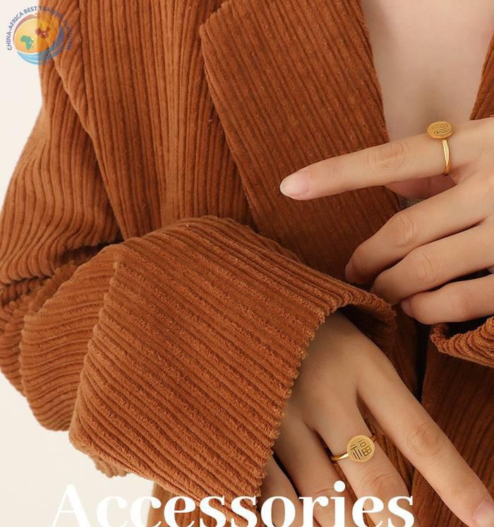 中国风单面福字小戒指极简设计感钛钢18k真金尾戒