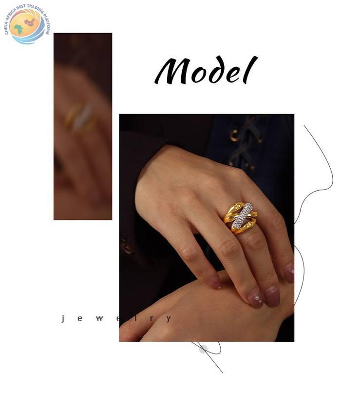 个性钛钢镀金几何镂空小众设计镶钻戒指