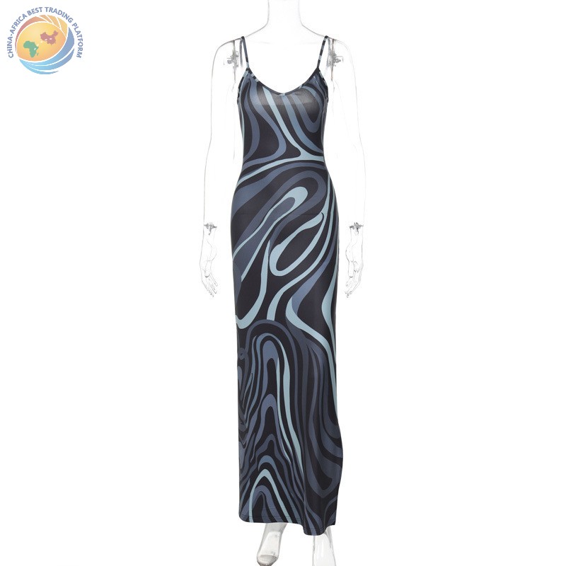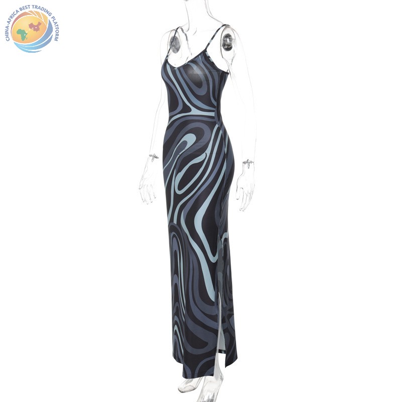 2024夏季新款欧美性感露背侧边开叉V领吊带连衣长裙