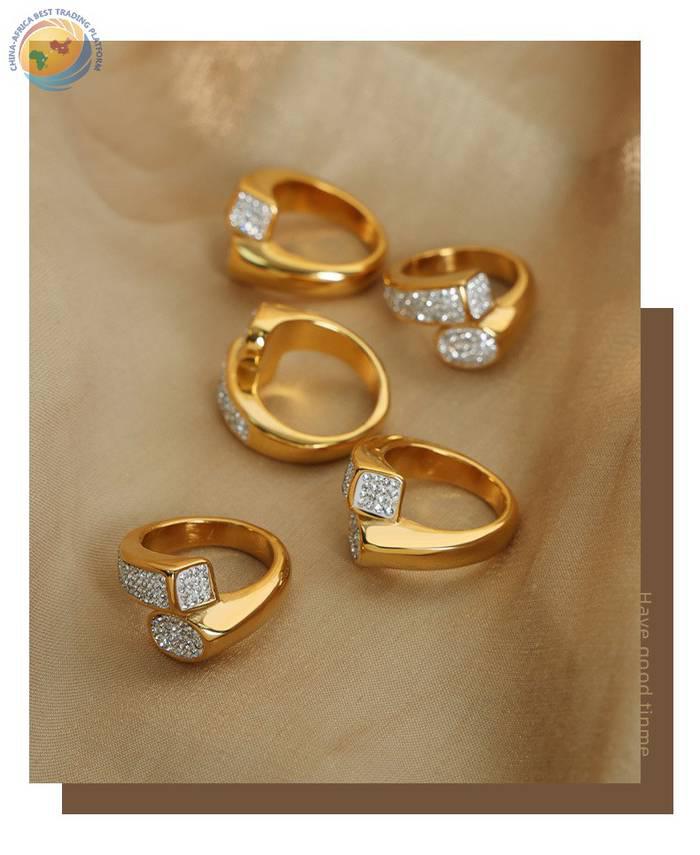 小众设计钛钢镀金镶满钻几何不规则戒指饰品女