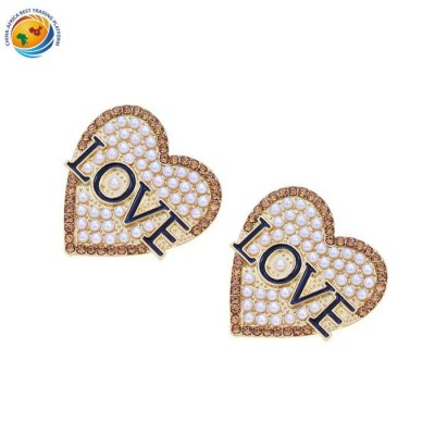 百搭彩釉LOVE字母爱心耳钉轻奢小众设计感心形珍珠耳环
