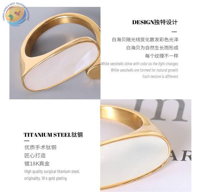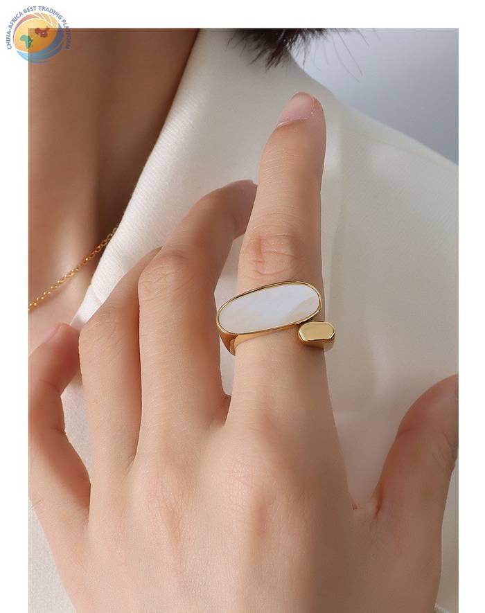 ins cold wind Europe and the United States minority titanium steel plated 18k gold jewelry white female shell oval open ring for women's hand jewelry