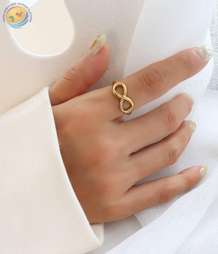 法式风格简约几何凹痕素圈戒指钛钢18k金食指戒指环饰品批发女