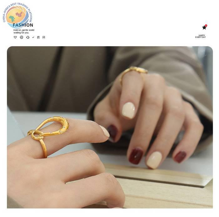 European and American cross-border advanced personality design geometric curve winding micro-inset zircon cold wind titanium steel ring jewelry female