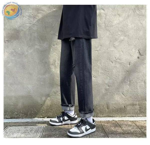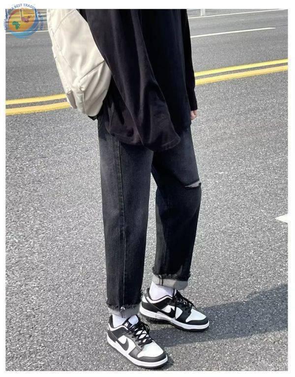 宽松直筒洞洞阔腿裤学生休闲长裤子薄款破洞牛仔裤男士