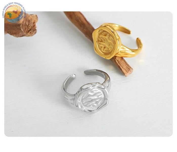 Europe and the United States cross-border fashion niche retro irregular convex texture titanium steel abstract pattern open ring women's jewelry
