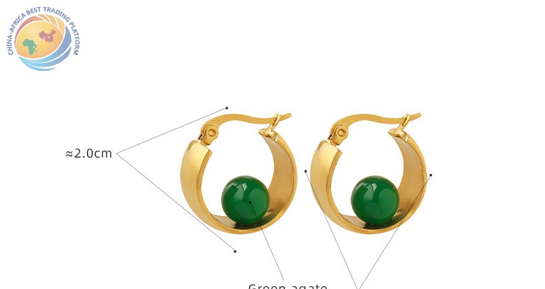 高级复古设计轻奢祖母绿U形耳环钛钢电镀18K金时尚个性饰品耳饰