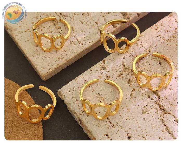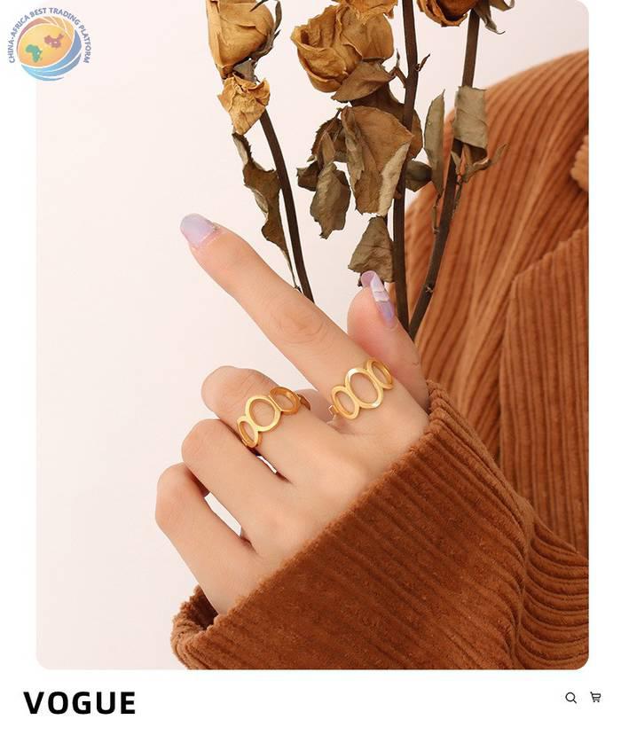 法式ins冷淡风轻奢时尚款几何椭圆镂空开口戒指钛钢镀18K金手饰品