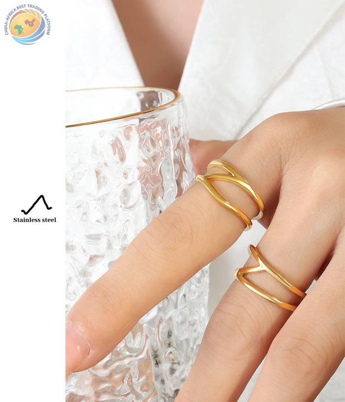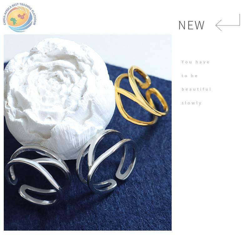 潮款百搭镂空开口戒指个性小众创意设计钛钢镀18k真金食指戒手饰