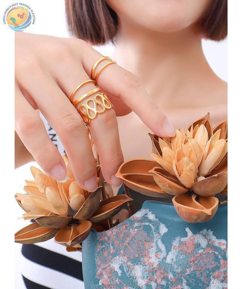 2021年情侣款男女百搭指环镂空设计开口戒指时尚小众钛钢手饰A264