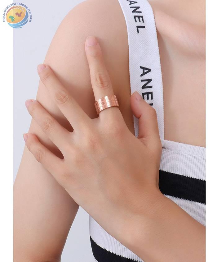跨境热销款简约冷淡ins风刻字圆环戒指钛钢镀18k真金指环饰品女