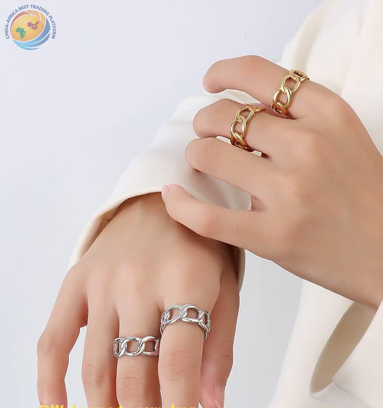European and American ins all-match niche design ring Titanium steel plated 18k gold hollow chain opening ring jewelry