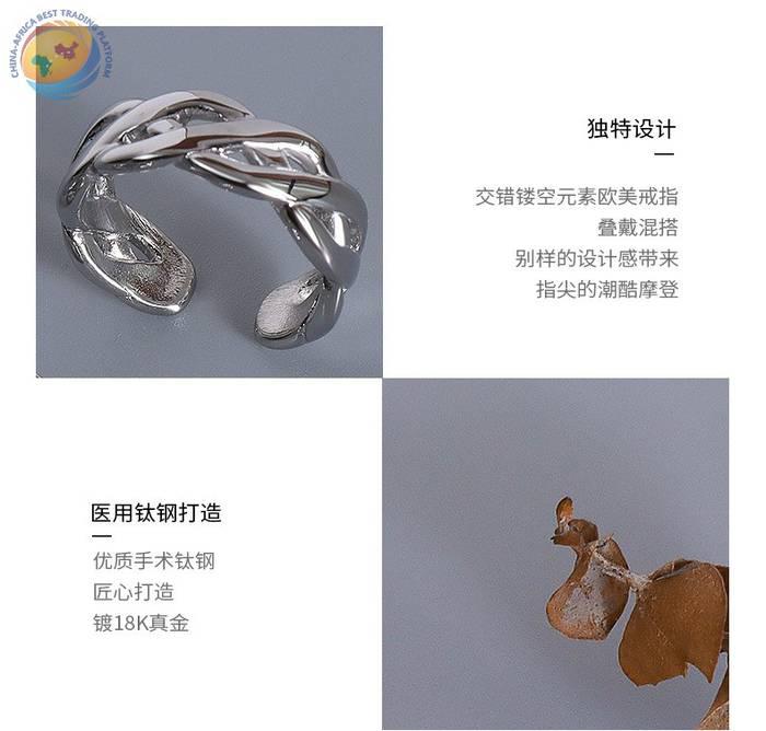 Marka中国结交错戒指钛钢材质镀18K真金保色开口指环
