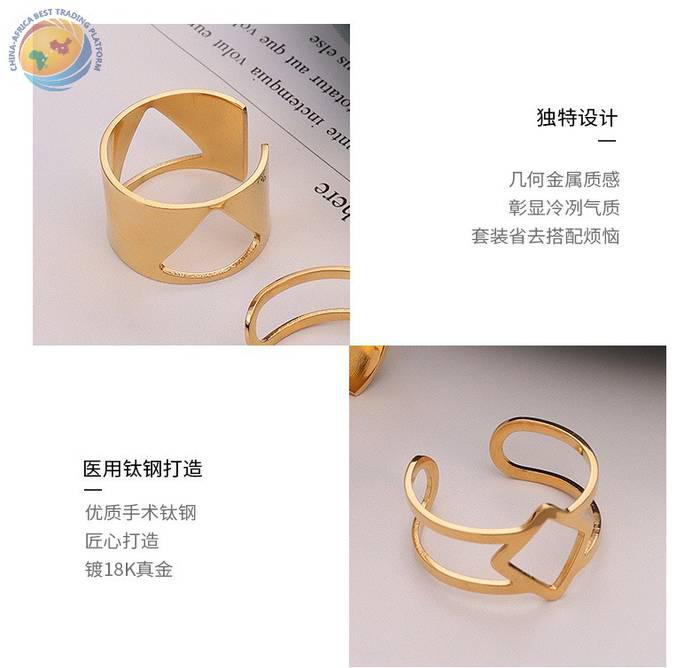 欧美ins风几何单层双层组合戒指钛钢指环镀18K金简约ring戒指A053