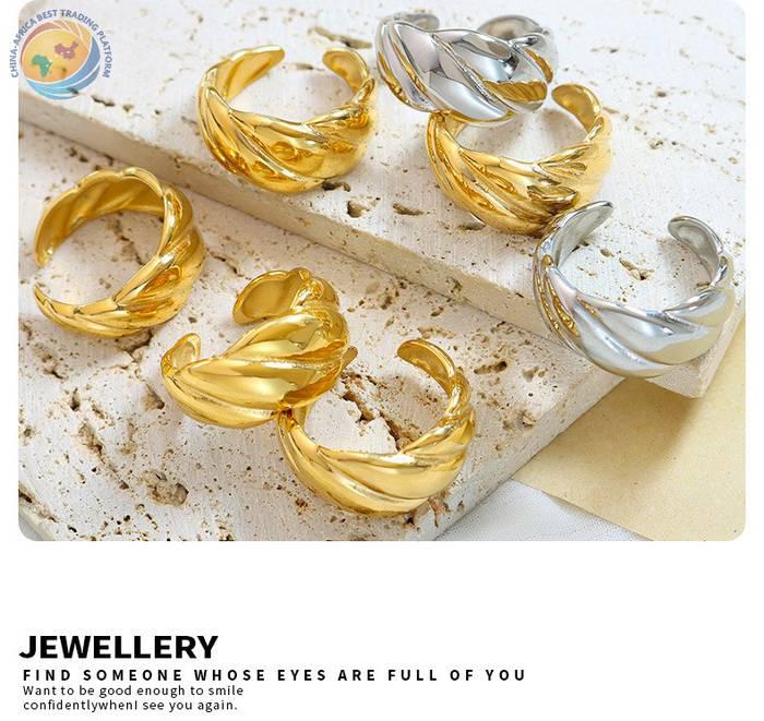Marka法式风格ins风螺纹开口戒指女食指环钛钢镀18k金手饰品 A210