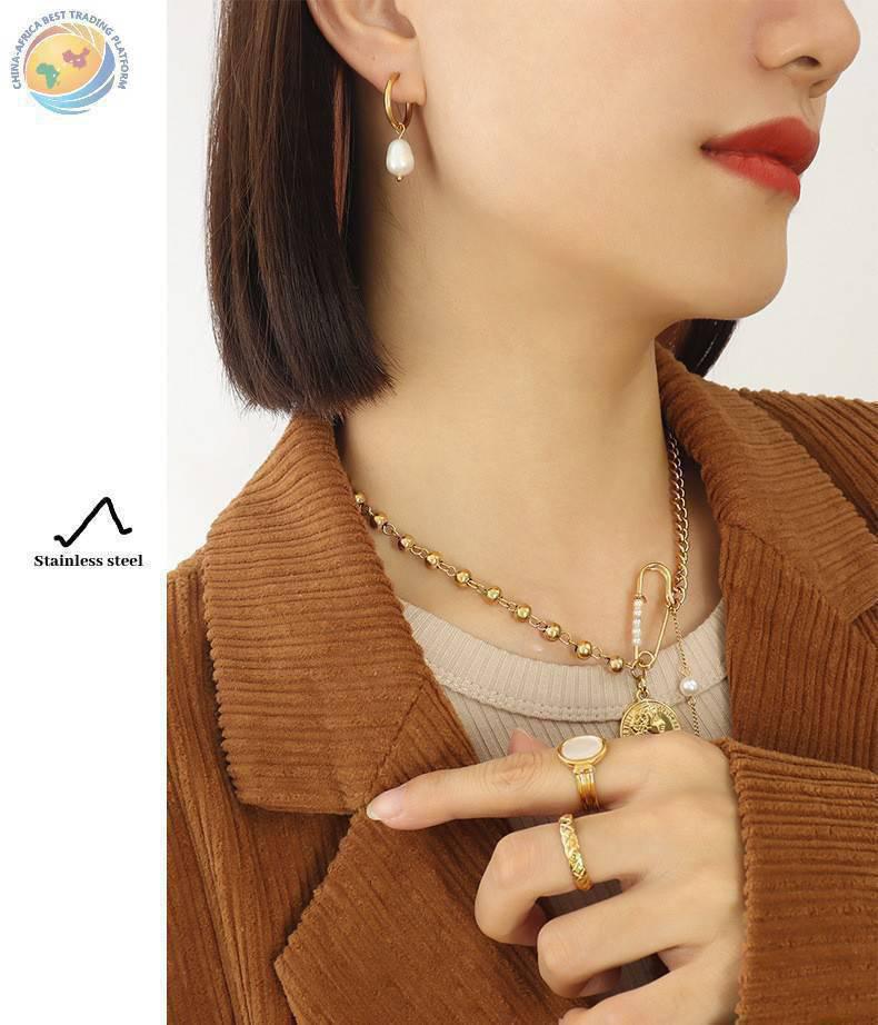 法式复古耳环淡水珍珠圈圈耳环 钛钢18K镀真金饰品ins冷淡风
