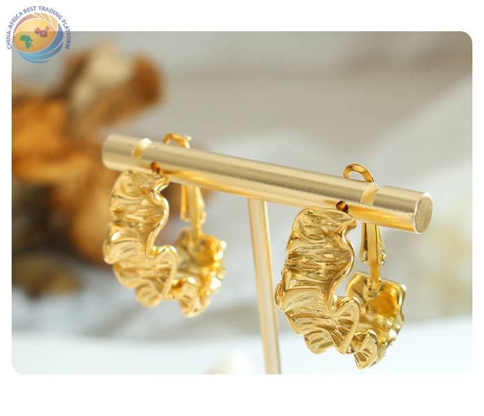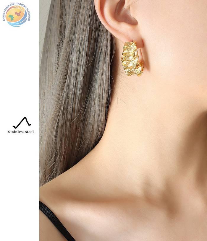 European and American ins personality new geometric fold texture earrings niche design titanium steel gold-plated ear buckle earrings