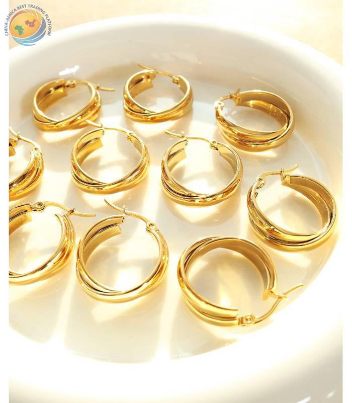 欧美ins冷淡风港风气质双拼U形状耳环钛钢镀18k金个性耳饰女 F375