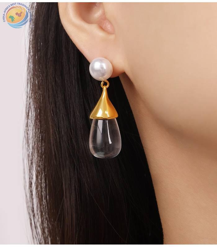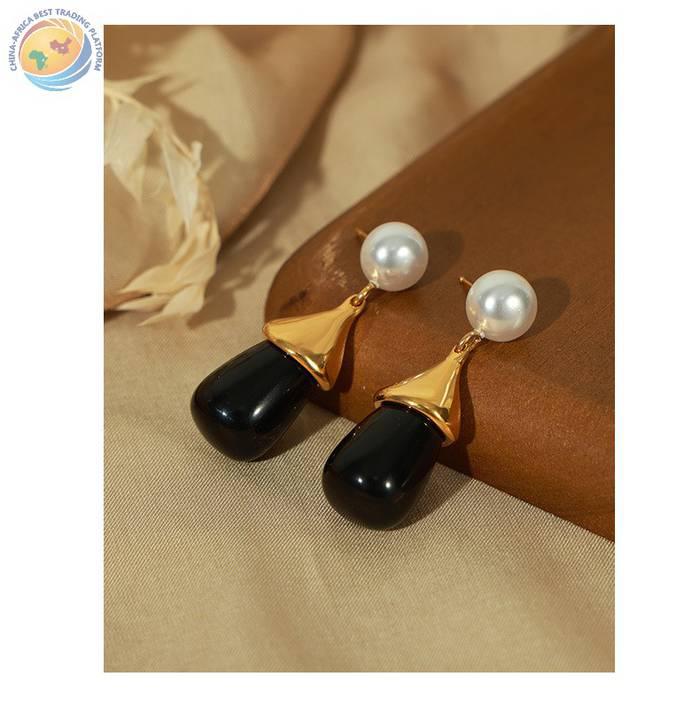 欧美新款跨境夸张小众设计感钛钢镀金水滴树脂吊坠耳环饰品批发女