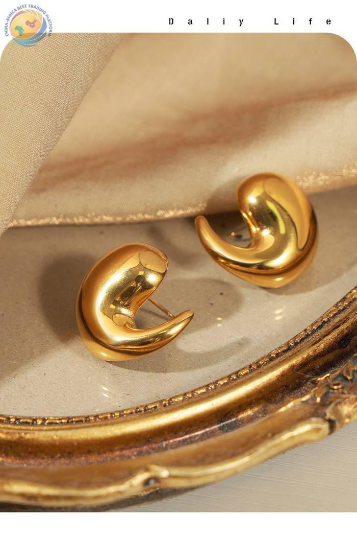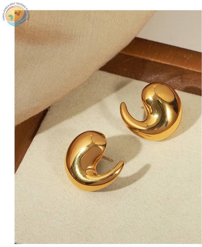 新款欧美风时尚个性简约钛钢镀金质感光面几何异形水滴耳环饰品女