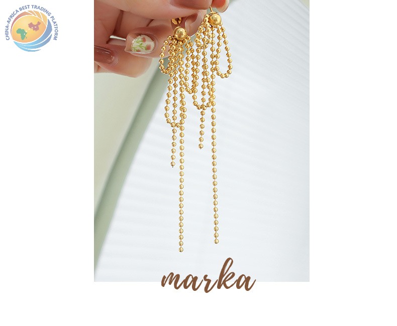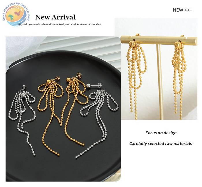 新款韩国女士链式耳环钛钢镀金链珠流苏吊坠耳钉多戴时尚气质耳饰