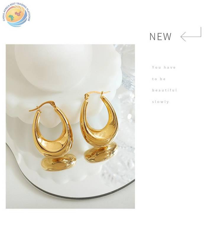 新款U形状大小耳环钛钢镀金跨境热销欧美风不掉色时尚个性耳饰品