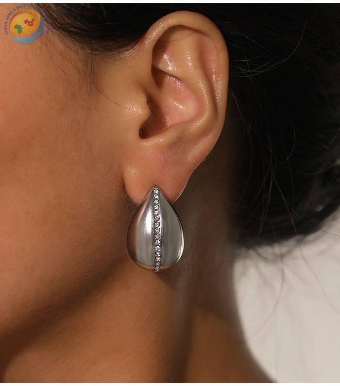 法式复古小众镶钻水滴形耳环女气质轻奢个性高级感冷淡风钛钢耳钉