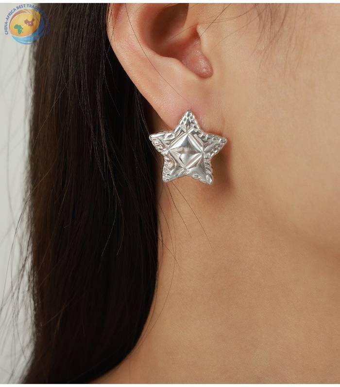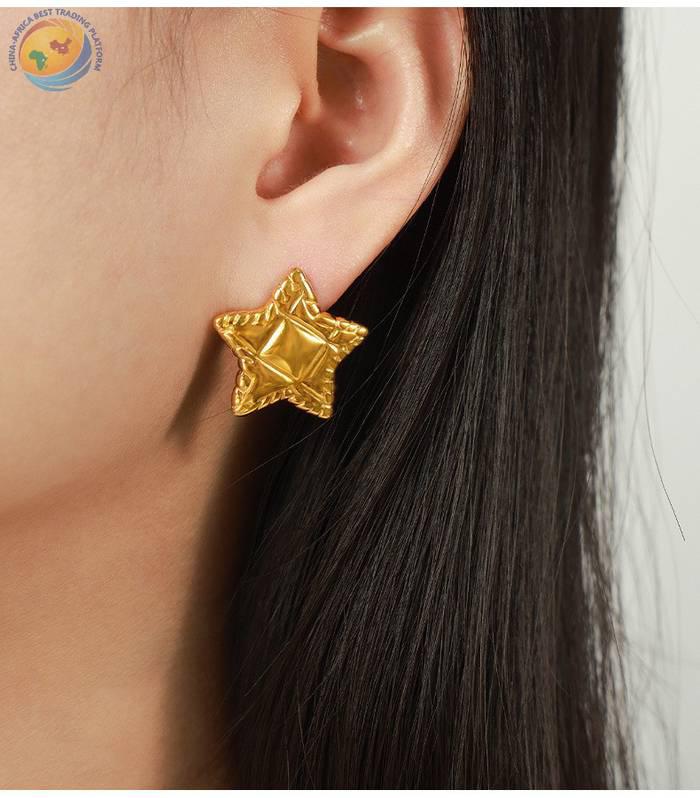 欧美风时尚百搭星星纹理耳环气质轻奢风钛钢镀18k金不掉色耳钉女