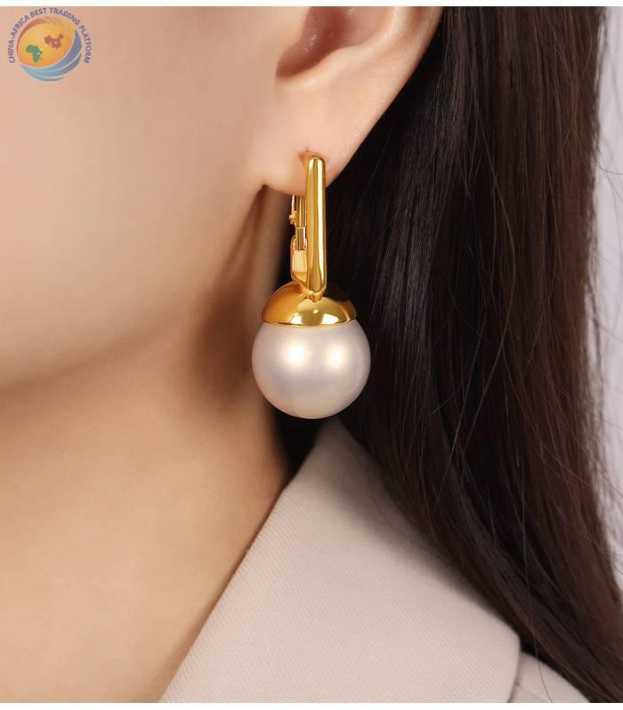 欧美跨境新款个性百搭夸张设计钛钢镀金镶彩珠圆珠吊坠耳环饰品女