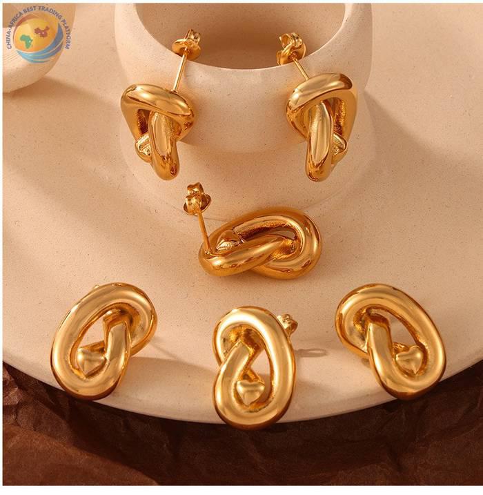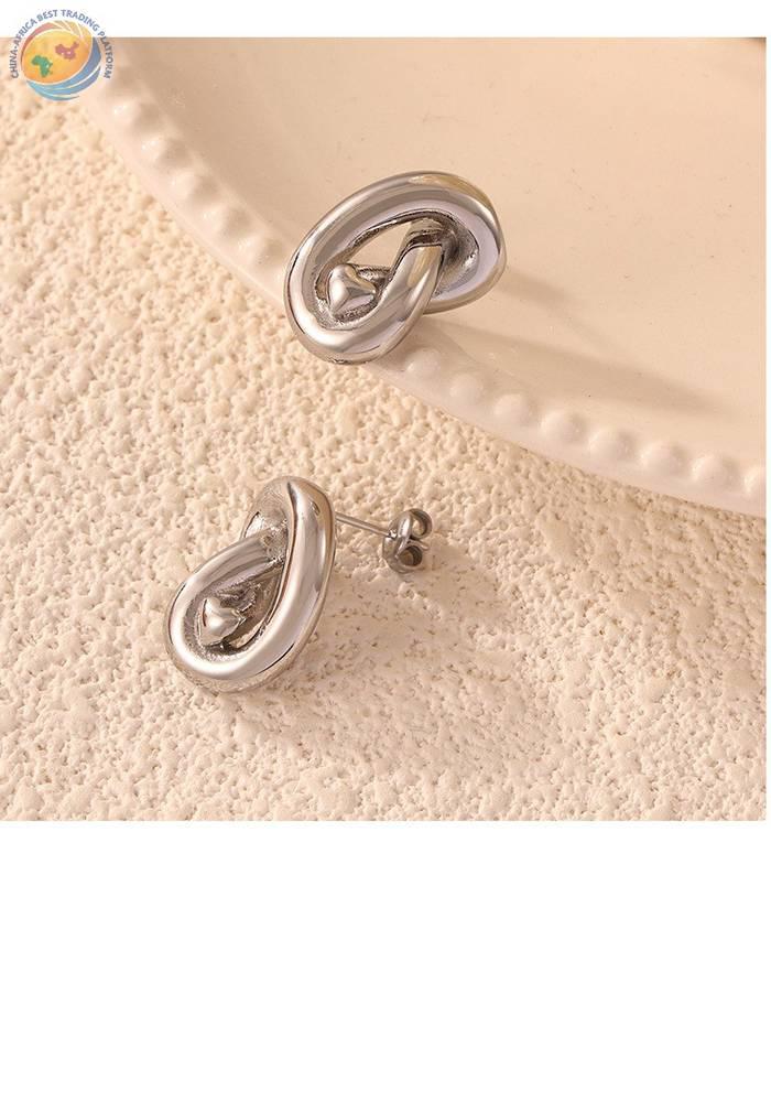 港风个性时尚简约饰品几何爱心线条扭转设计感钛钢镀金镂空耳钉